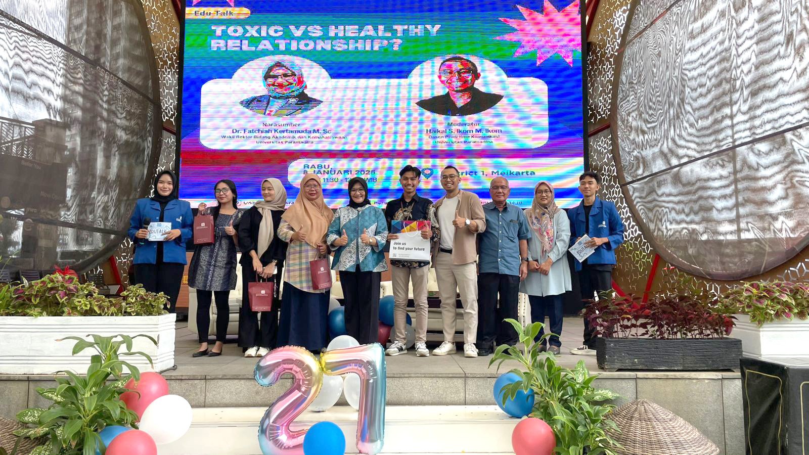 Universitas Paramadina Cikarang mengadakan Edu Talk, dalam rangka memperingati Dies Natalis Universitas Paramadina yang ke-27. Acara ini bekerjasama dengan District 1 Lippo Cikarang, LCC (Lippo Cikarang Cosmopolis), dan Lippo Malls bertempat di District 1 Meikarta dengan tema ‘Toxic VS Healthy Relationship?’ pada Rabu (8/1/2025).