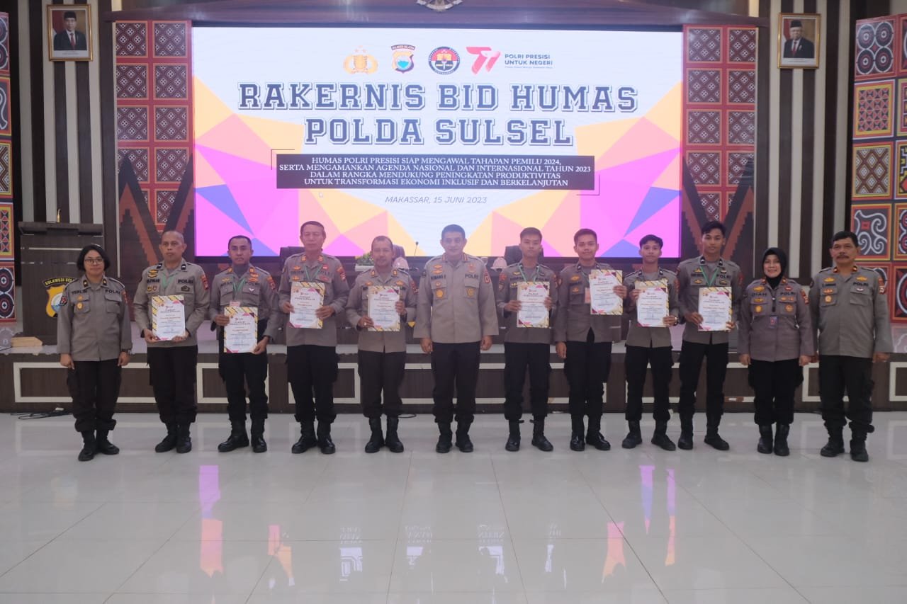 Piagam penghargaan dari Bidang Humas Polda Sulsel yang diserahkan langsung oleh Kabid Humas Kombes Pol Komang Suartana pada rakernis Bid Humas Polda Sulsel Tahun 2023.