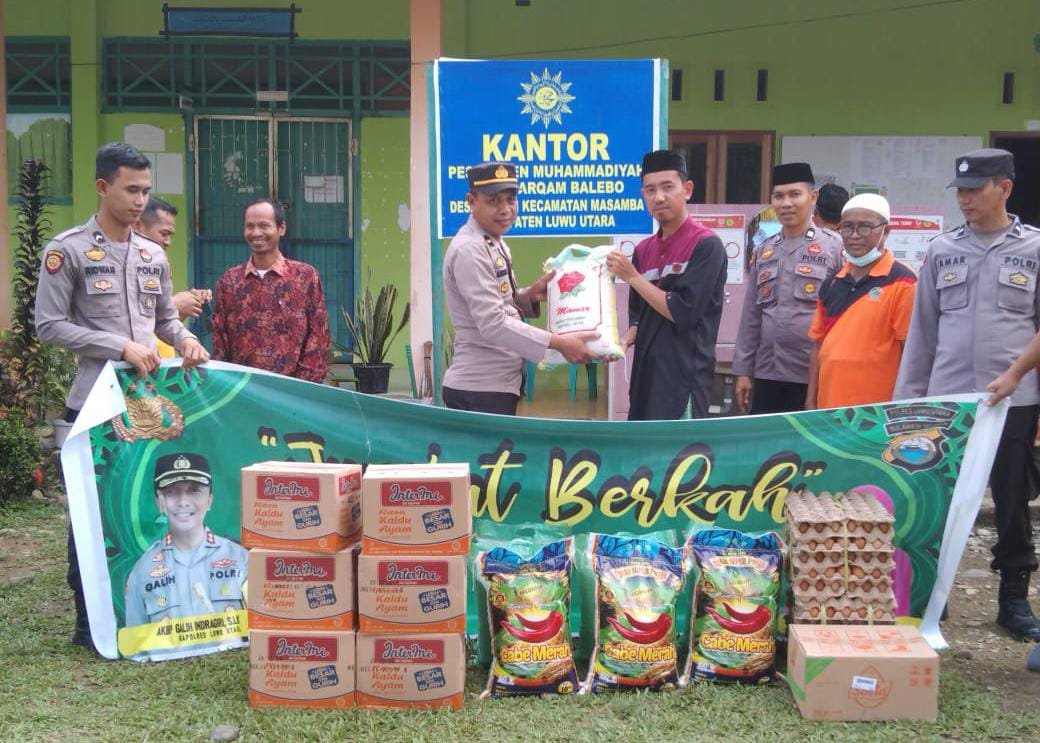 Seperti halnya yang kembali dilakukan Kapolres AKBP Galih melalui Paursubbagdal Ops, IPDA Zainuddin, berbagi sembako kepada santri dan santriwati di Pondok Pesantren (Ponpes) Darul Arqam Kecamatan Masamba Kabupaten Luwu Utara, Jumat (11/08/2023).