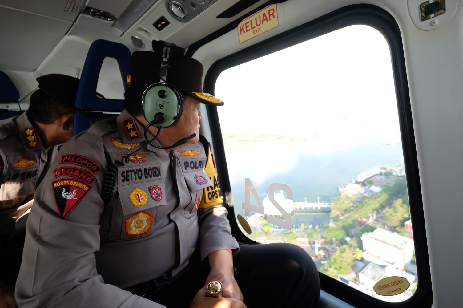 SULSEL, Nadinewsonline.com – Kepolisian Daerah (Kapolda) Sulawesi Selatan (Sulsel), Irjen Pol Drs. Setyo Boedi Moempoeni Harso, S.H., M.Hum., memantau pengamanan giat Jalan Santai Calon Wakil Presiden (Cawapres) Gibran lewat udara di rute sepanjang Jl. Sudirman Makassar, Sabtu (25/11/2023).
