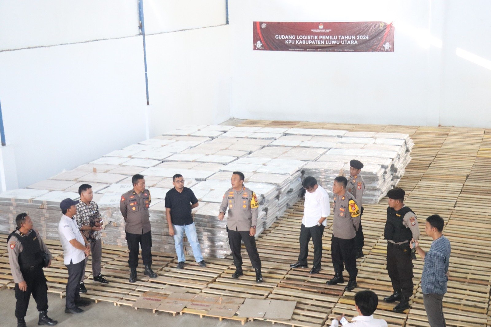 LUWU UTARA, Nadinewsonline.com – Kepala Kepolisian Resor (Kapolres) Luwu Utara, AKBP Galih Indragiri, S.I.K., melakukan kunjungan ke Gudang Logistik Komisi Pemilihan Umum (KPU).