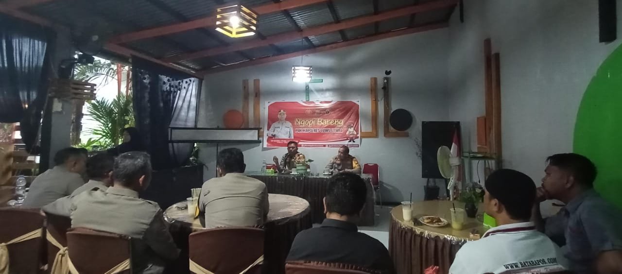 LUWU UTARA, Nadinewsonline.com – Kepala Kepolisian Resort (Kapolres) Luwu Utara, AKBP Muhammad Husni Ramli ngopi bersama dengan para awak media.